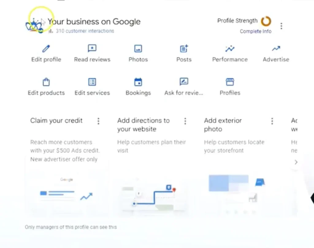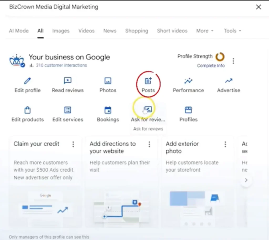 Start by searching for your business on Google. Once your profile appears, click on it to access your dashboard. This is your control center for managing posts, reviews, photos, and more.