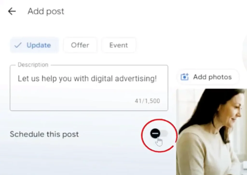 That’s where scheduling comes in. Google Business Profile now lets you create posts in advance and set them to go live automatically—meaning you can batch your content when you have time, rather than scrambling to post in the middle of a busy week.